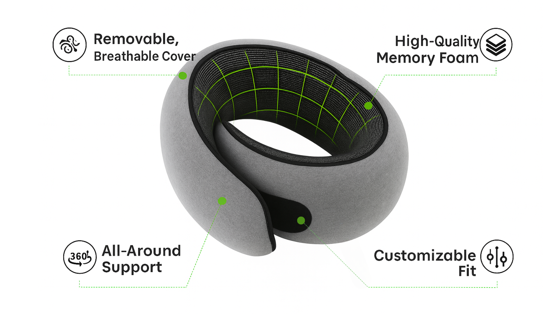 Crafted with high-density memory foam, 360° neck and shoulder support, and a removable breathable cover — giving you the perfect solution for pain-free travel and restful sleep wherever you go.